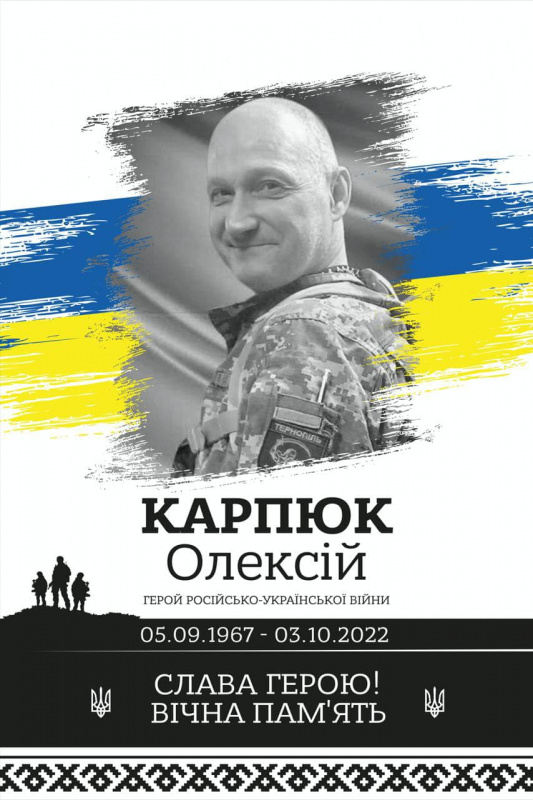 Олексій Карпюк – 55-річний український військовик, старший лейтенант 24-ї окремої механізованої бригади імені Короля Данила. Загинув 3 жовтня 2022 року в боях за Херсонщину, в районі населеного пункту Сухий Ставок.
