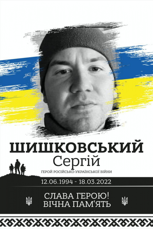 Сергій Шишковський – 27-річний український військовик, старший бойовий медик евакуаційного відділення 137 ОБМП, в/ч А 0216. Загинув 18 березня 2022 року в Миколаєві внаслідок ракетного обстрілу.