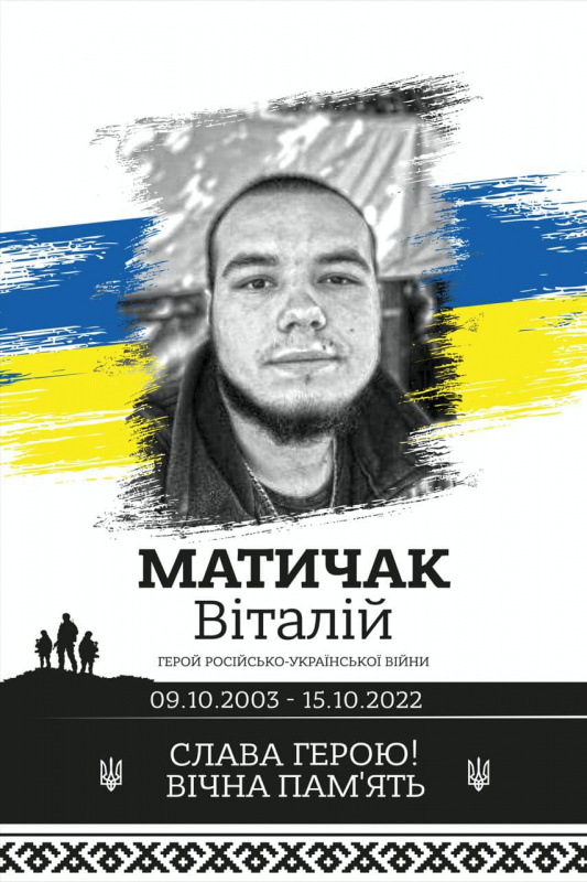 Матичак Віталій - 19-річний український військовик, солдат, служив у 10-тій окремій гірсько-штурмовій бригаді Збройних Сил України, у саперному відділенні танкового батальйону. Загинув 15 жовтня 2022 року, виконуючи бойове завдання, на Донеччині.