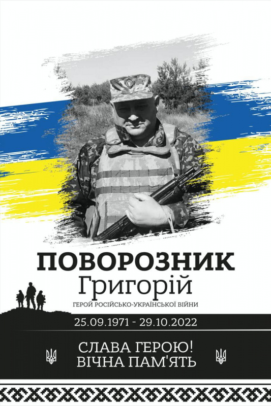Григорій Поворозник - 51-річний український військовик, старший лейтенант в/ч А4626. Загинув 29 жовтня 2022 року поблизу села Костянтинівка Донецької області.