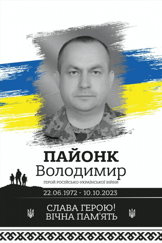 «До Збаразької громади знову надійшло трагічне повідомлення. У медзакладі міста Дніпро 10 жовтня помер воїн, мешканець села Вищі Луб’янки сержант Володимир Пайонк. Військова служба підірвала здоров’я нашого земляка на 51-ому році життя, залишивши в жалобі матір, доньку, близьких та рідних захисника. Щиро розділяємо невимовне материнське горе. Низько схиляємо голови перед мужністю військового, який безстрашно воював з російським агресором за незалежність української держави. Вічна слава Герою!» – повідомив голова Збаразької громади Роман Полікровський.