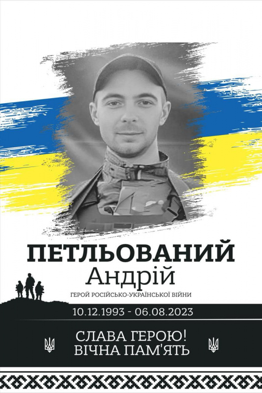 Андрій Петльований, 29-річний український військовик, старший солдат, кулеметник 1 відділення 2 стрілецького взводу стрілецької роти, 2 стрілецького батальйону військової частини А 3032. Загинув 6 серпня 2023 року, виконуючи бойове завдання в районі населеного пункту Урожайне Волноваського району Донецької області.