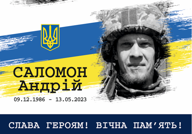 Андрій Саломон - 36-річний захисник України, гранатометник 3 десантно-штурмового батальйону 3 десантно-штурмового взводу 7 десантно-штурмової роти 2 десантно-штурмового батальйону військової частини А 0274. Загинув 13 травня 2023 року під час виконання бойового завдання в районі населеного пункту Іванівське Бахмутського району Донецької області.