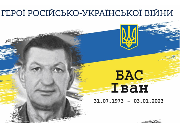 Іван Бас – 49-річний український військовослужбовець, солдат Збройних сил України, механік-водій механізованого відділення механізованого взводу механізованої роти механізованого батальйону військової частини А0047, 45-ої бригади. Іван Бас загинув 3 січня 2023 року від численних вогнепальних поранень в населеному пункті Красногорівка Покровського району Донецької області.