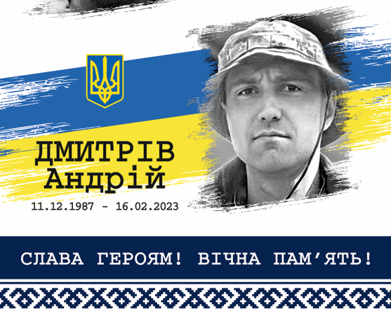 Андрій Дмитрів – 36-річний український військовик, солдат, стрілець-снайпер 3 десантно-штурмового взводу 2 десантно-штурмової роти 1 десантно-штурмового батальйону в/ч А0224. Помер 16 лютого 2023 року в лікарні в міста Вознесенськ Миколаївської області.