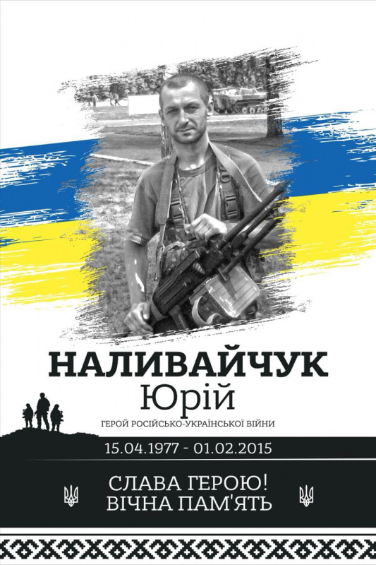 Юрій Наливайчук – 38-річний український військовик, молодший сержант 6-го окремого мотопіхотного батальйону 128-ї гірсько-піхотної бригади (раніше 6-й БТО Тернопільської області «Збруч»). Загинув 1 лютого 2015 року в селі Червоний Чабан Каланчацького району Херсонської області.