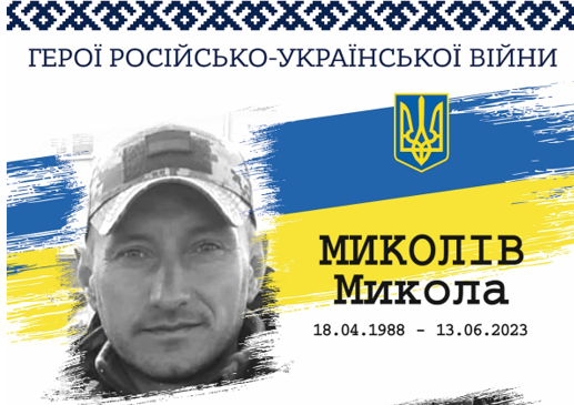 «Загинув мій чоловік, Микола Миколів, 13 червня 2023 року, під час артобстрілу противника. На жаль, його поранення були несумісні з життям. Не змогли його врятувати. Його і ще декількох хлопців», – пише дружина Людмила Миколів, розповідаючи про загибель рідної людини.