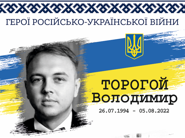 Володимир Торогой — 28-річний український військовик, лейтенант, командир мінометної батареї 20-ої окремої бригади спеціального призначення. Загинув 5 серпня 2022 року біля селища Велика Новосілка на Донеччині.