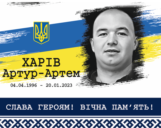 Артур-Артем Харів – 27-річний український військовик, солдат, стрілець-помічник гранатометника десантно-штурмового взводу десантно-штурмової роти десантно-штурмового батальйону військової частини А0281, позивний «Другий». Загинув 20 січня 2023 року внаслідок штурмових дій противника в районі міста Кремінна Сєвєродонецького району Луганської області.