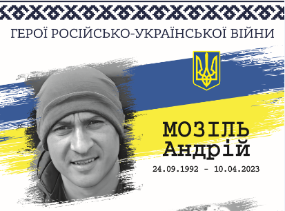 Мозіль Андрій – 30-річний український військовик, солдат, в/ч А 3892. Загинув 10 квітня 2023 року під час виконання бойового завдання в районі населеного пункту Роздолівка Донецької області.