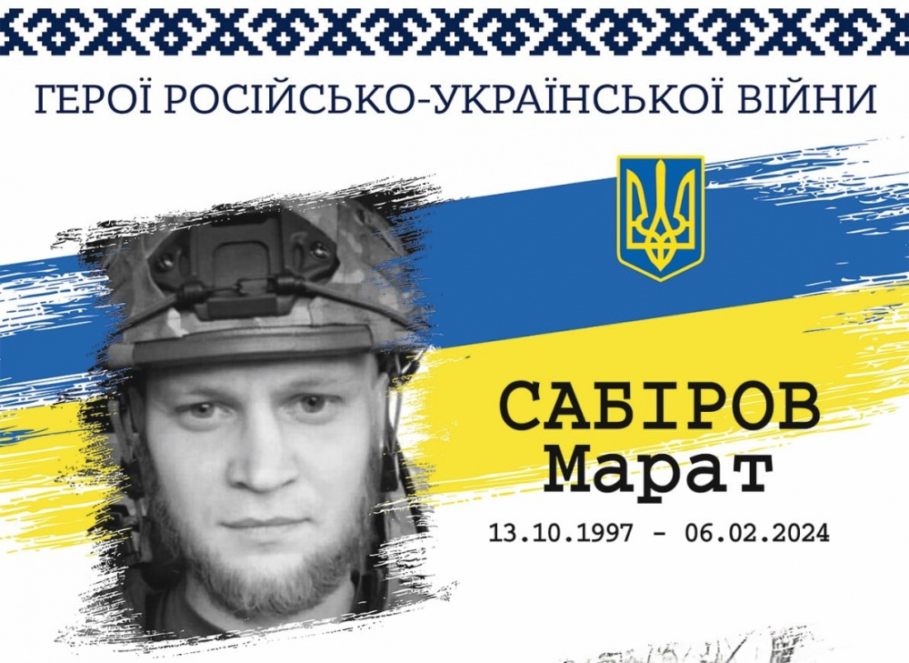 Сабіров Марат Ільшатович - 26-річний український військовик, старший офіцер 1-ої бойової групи 3-ої групи спеціального призначення 4 окремого штурмового загону спеціального призначення «Омега» Центру спеціального призначення Національної гвардії України військової частини 3073. Загинув 6 лютого 2024 року під час виконання бойового завдання в районі населеного пункту Терни Лиманського району Донецької області.
