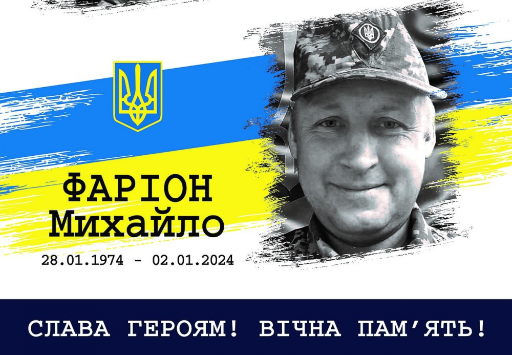 Фаріон Михайло Володимирович - 49-річний український військовик, молодший сержант, бойовий медик 1-го стрілецького взводу 2-гої стрілецької роти військової частини А 7403. Загинув 2 січня 2024 року поблизу населеного пункту Новодарівка Пологівського району Запорізької області.