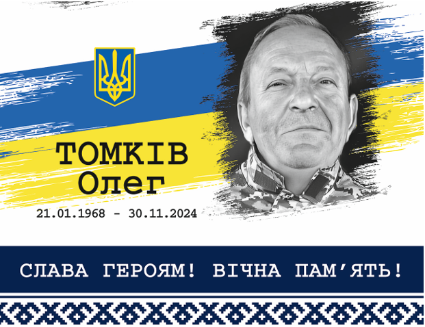 Томків Олег Богданович – 56-річний український військовик, молодший сержант, водій-електрик 3 стрілецької роти військової частини А 7170. Помер раптово 30 листопада 2024 року в районі населеного пункту Конотоп Сумської області.