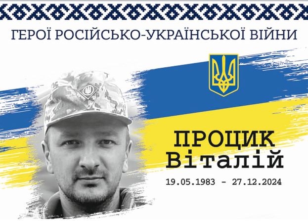 Загинув Віталій Процик як Герой, 27 грудня 2024 року неподалік Нікольського, що у Суджанському районі Курської області, під час виконання бойового завдання, залишаючись вірним військовому обов’язку, захищаючи Україну.