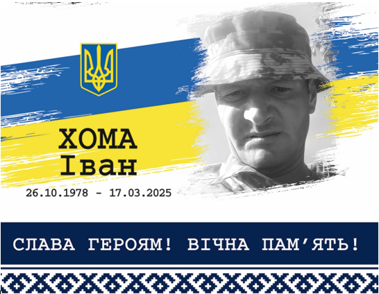 Хома Іван Зіновійович – 46-річний український військовик, солдат, інспектор прикордонної служби 2 категорії-кулеметник другого відділення наземної розвідки відділу прикордонної служби (тип С) повітряної та наземної розвідки 1 прикордонного загону Державної прикордонної служби України військової частини 9937. Життя Івана Хоми обірвалося 17 березня 2025 року в селі Тинне Сарненського району Рівненської області.