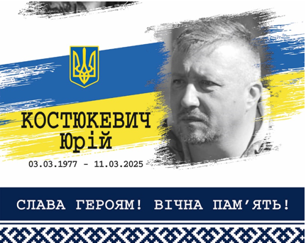 Загинув Юрій Костюкевич 11 березня 2025 року під час виконання бойового завдання біля населеного пункту Шевченко Волноваського району Донецької області.