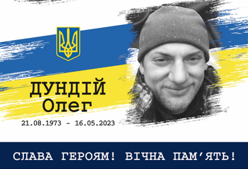 Дундій Олег Сергійович – 49-річний український військовик, молодший сержант, доброволець 82 батальйону 105-ї окремої бригади ТРО, командир бойової машини-командир відділення механізованого взводу, механізованої роти військової частини А7169. Загинув 16 травня 2023 року в селі Масютівка Куп’янського району Харківської області.
