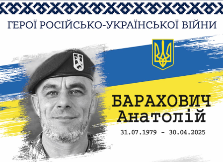 Барахович Анатолій Миколайович – 45-річний український військовик, молодший сержант, технік-водій розвідувальної прикордонної застави прикордонної комендатури швидкого реагування військової частини 1551. Загинув 30 квітня 2025 в населеному пункті Городня Чернігівського району Чернігівської області.