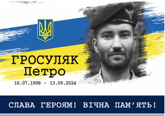 Гросуляк Петро Іванович – 26-річний український військовик, солдат, зовнішній пілот (оператор) безпілотних літальних апаратів взводу безпілотних авіаційних комплексів військової частини А0641, з позивним «Токіо». Загинув 13 вересня 2024 року біля села Григорівка Бахмутського району Донецької області.