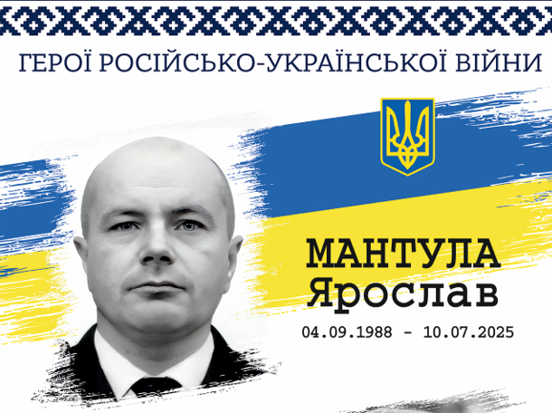 Мантула Ярослав Іванович – 36-річний український військовик, солдат, молодший інспектор прикордонної служби 2 категорії-кухар відділення тилового забезпечення прикордонної комендатури швидкого реагування розвідувально-ударних безпілотних авіа комплексів 1 прикордонного загону військової частини 9937. Загинув 10 липня 2025 року в районі населеного пункту Кругле Чугуївського району Харківської області.