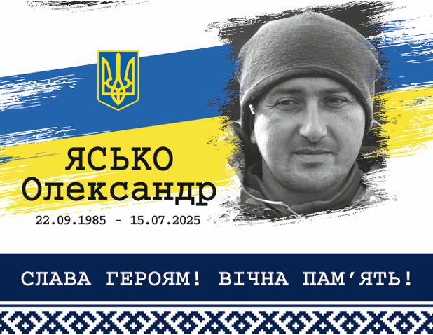 Олександр Ясько віддав своє життя за Україну. Ми схиляємо голови перед подвигом та жертовністю Героя-захисника.