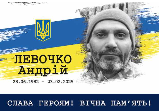 Левочко Андрій Романович – 42-річний український військовик, солдат, навідник десантно-штурмового відділення десантно-штурмової взводу 8 десантно-штурмової роти 2 десантно-штурмового батальйону 82 окремої десантно-штурмової бригади військової частини А2582. Загинув 23 лютого 2025 року в районі населеного пункту Гончаровка Суджанського району Курської області рф.