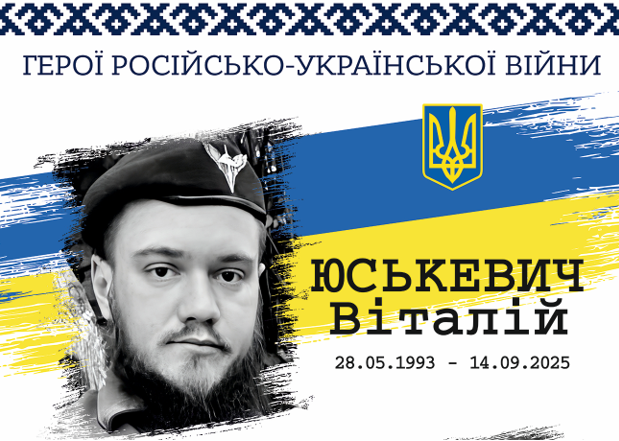 Юськевич Віталій Русланович – 32-річний український військовик, солдат, водій електрик-моторист відділення ударних безпілотних авіаційних комплексів взводу ударних безпілотних авіаційних комплексів роти безпілотних систем парашутно-десантного батальйону військової частини А1126. Позивний – «Продюсер». Загинув 14 вересня 2025 року поблизу населеного пункту Родинське Покровського району Донецької області.