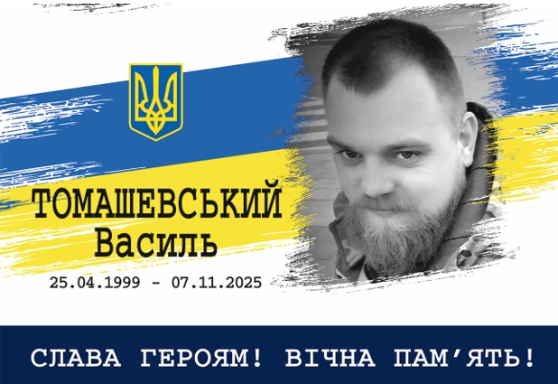 Томашевський Василь Васильович – 26-річний український військовик, солдат, розвідник-далекомірник відділення управління командира батареї 4-ї самохідної артилерійської батареї 2-го самохідного артилерійського дивізіону військової частини А3215, позивний «Сова». Загинув 7 листопада 2025 року під час виконання бойового завдання поблизу села Новопавлівка Пологівського району Запорізької області.