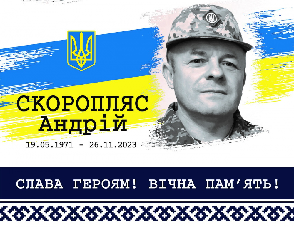 Скоропляс Андрій Андрійович – 52-річний український військовий, солдат, номер обслуги механізованого відділення механізованого взводу механізованої роти механізованого батальйону військової частини А4712. Загинув 26 листопада 2023 року у селі Роботине Пологівського району Запорізької області.