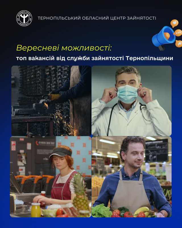 З інформацією про вакансії можна ознайомитись на «Єдиному порталі вакансій», що розміщений на сайті Державної служби зайнятості та у мобільному застосунку Державної служби зайнятості, з якого також можна знайти не лише вакансії, а ще й отримати інформацію про послуги служби зайнятості, які вас зацікавили. Або ж звертайтеся у зручний для вас підрозділ Тернопільського обласного центру зайнятості, телефон «гарячої лінії» – (063) 576-57-56.