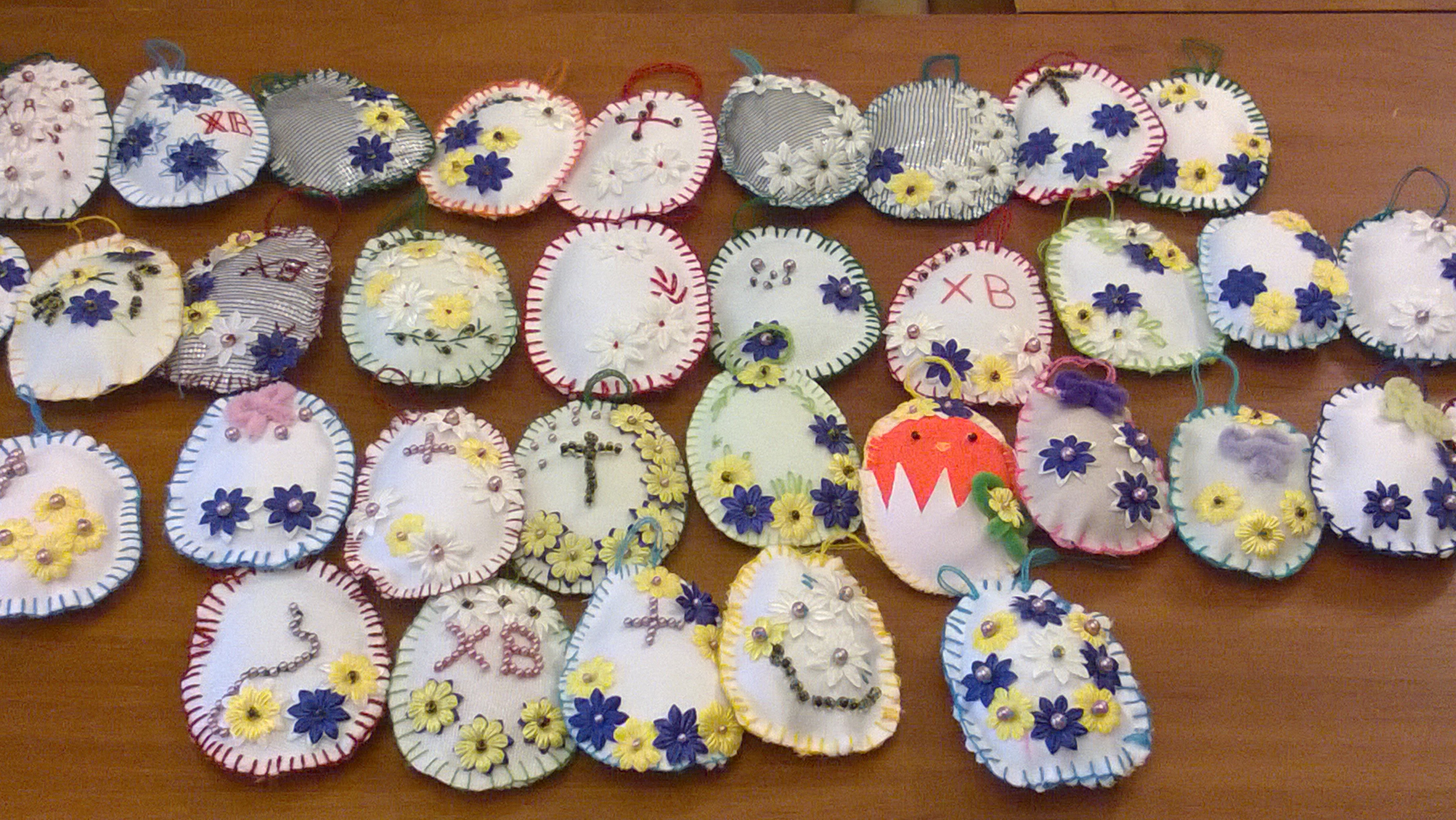 Виготовляють пасхальні сувеніри волонтери Тернопільського міського центру соціальних служб для сім’ї, дітей та молоді, студенти ТНПУ ім. В.Гнатюка та ТІСІТ. У своїх роботах вони використовують тканини, стрічки, бісер та інші декоративні елементи тощо.