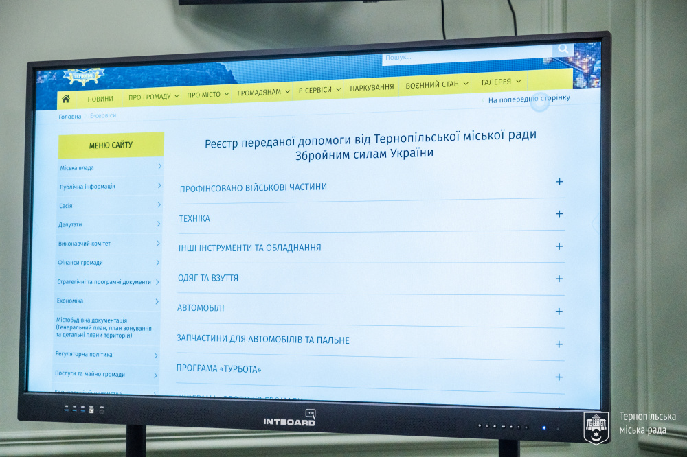 10 листопада у приміщенні міської ради презентували Реєстр переданої допомоги від Тернопільської міської ради Збройним силам України. Інформація у Реєстрі подана у форматі звіту за період з 2022 року і дотепер.