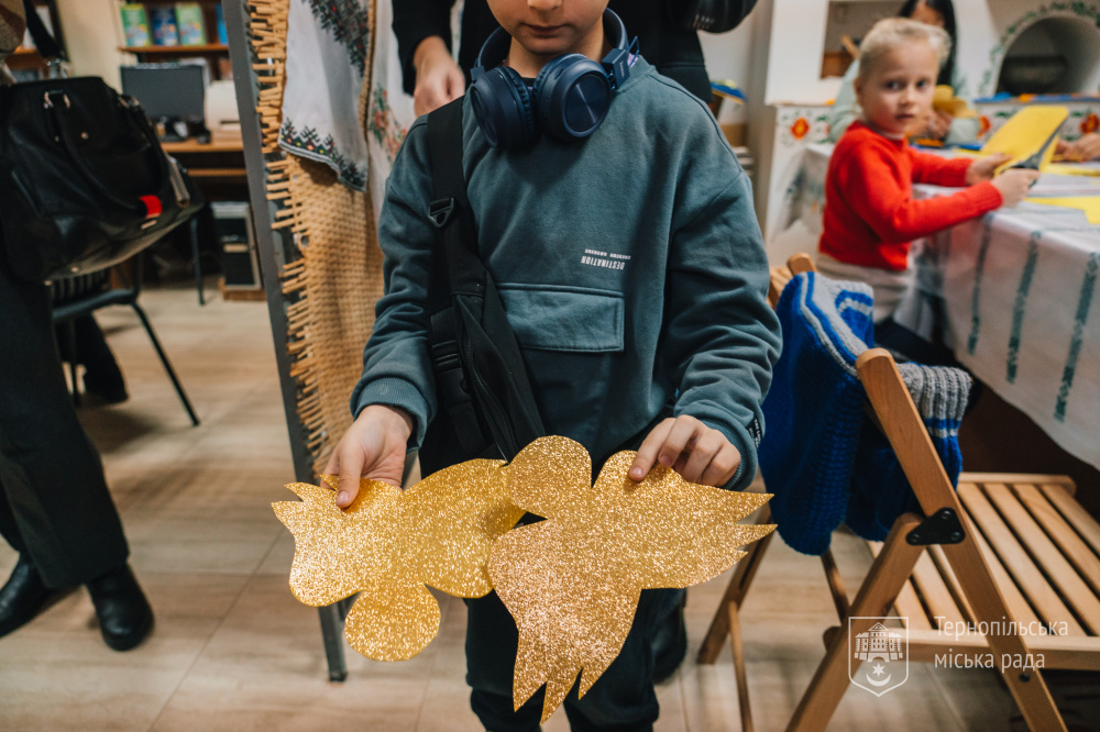 «Один з майстер-класів відбувся у нашому українському етноцентрі, що діє на базі бібліотеки-філії для дорослих №4. Тут діти та родини Героїв Тернополя активно долучились до заходу та виготовляли патріотичних ангеликів, які прикрасять головну ялинку нашого міста», – розповідає начальник управління культури і мистецтв міської ради Світлана Козелко.