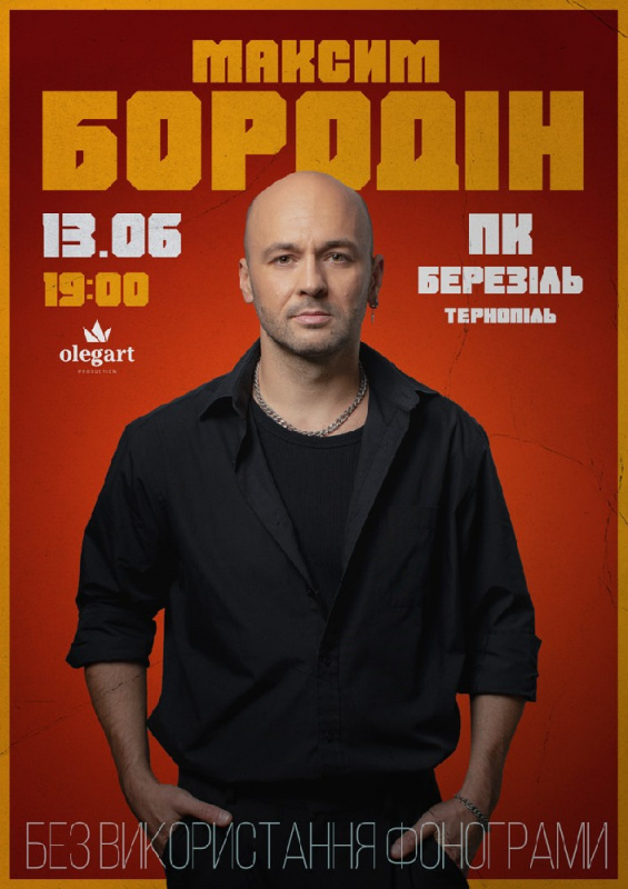 13 червня о 19.00 в Палаці культури «Березіль» ім. Леся Курбаса відбудеться концерт талановитого і харизматичного співка Максима Бородіна.