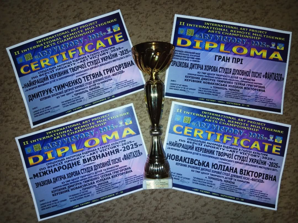 Зразкова дитяча хорова студія духовної пісні «Фантазія» Центру творчості дітей та юнацтва міста Тернополя виборола Гран-прі ІІ Міжнародного чемпіонату з дистанційних багатожанрових мистецтв «Art Victory-2025».