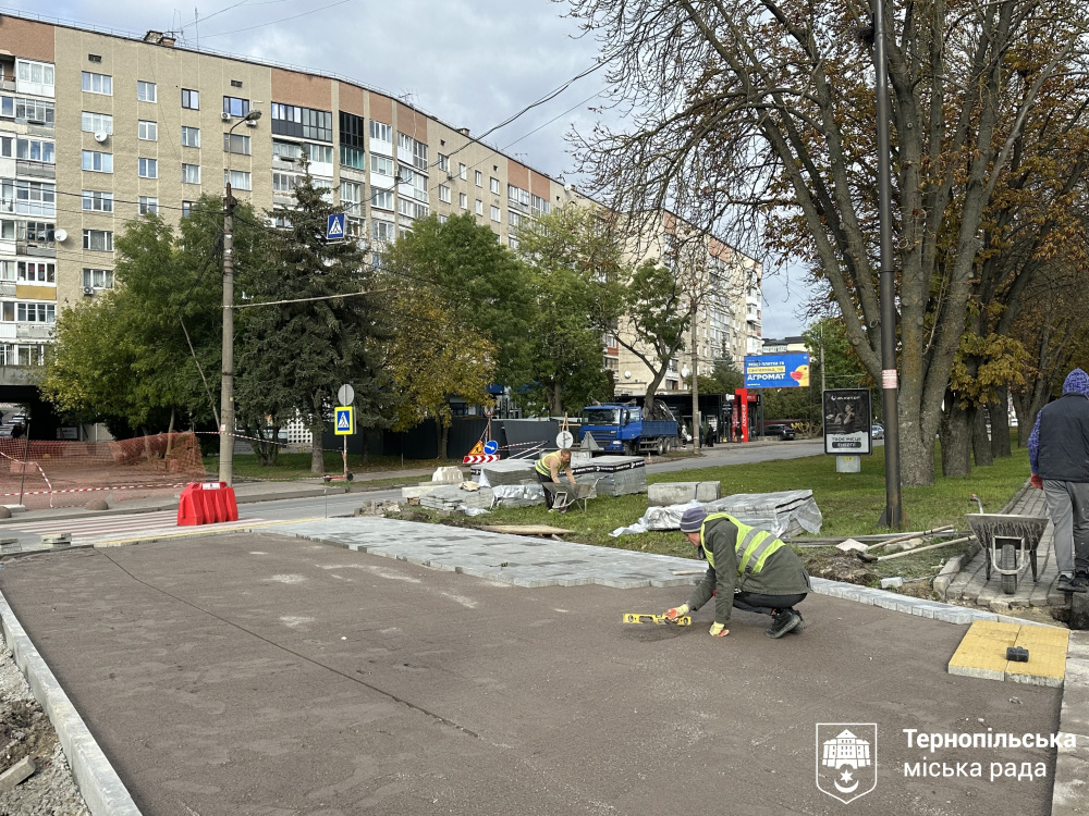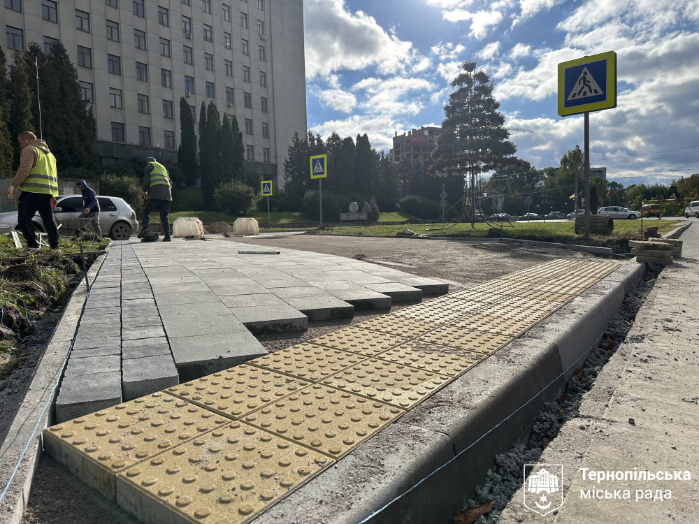 У Тернополі продовжують реалізовувати проєкт із формування безбар’єрного простору на вулиці Михайла Грушевського. Роботи охоплюють ділянку від Театрального майдану до будівлі обласної військової адміністрації.
