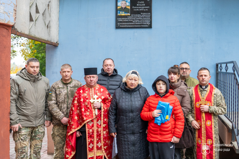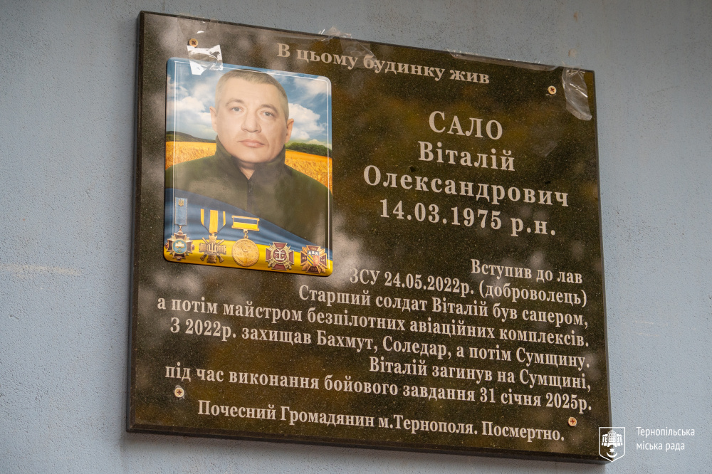 «Сьогодні ми зібралися, щоб віддати шану нашому землякові - Віталію Салу, мужньому захиснику України, який віддав своє життя за свободу та незалежність нашої держави. Його ім’я відтепер буде увіковічене на фасаді будинку, де він жив, серед людей, які знали його як доброго, щирого, працьовитого чоловіка, люблячого батька, відданого друга. Ця меморіальна таблиця - не просто знак пам’яті. Це символ вдячності громади Тернополя, символ незламності українського духу та нагадування кожному з нас, якою ціною виборюється мир», - зазначив секретар Тернопільської міської ради Ігор Гірчак.