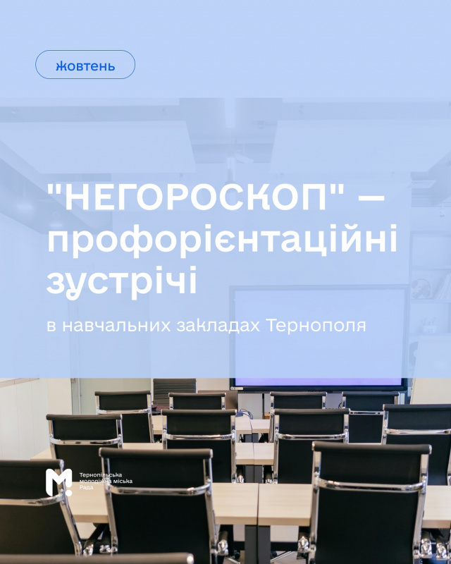 Тернопільська Молодіжна міська рада продовжує реалізацію проєкту «Негороскоп», що вже третій рік поспіль проводить профорієнтаційні зустрічі для учнівської молоді. Метою проєкту є допомога учням у виборі професії, розвитку активної громадянської позиції та участі в неформальній освіті.