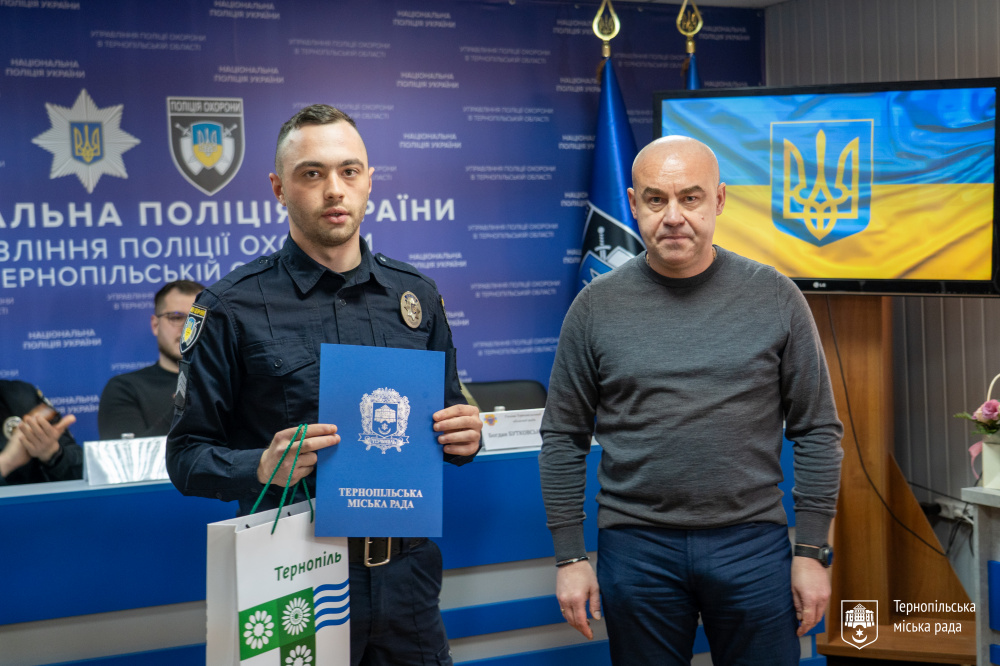 Щорічно 29 жовтня в Україні відзначають День працівників поліції охорони. Цьогоріч минає 73 роки з дня створення служби. З нагоди професійного свята міський голова Тернополя Сергій Надал привітав особовий склад Управління поліції охорони в Тернопільській області та нагородив п’ятьох працівників подяками, відзнаками та цінними подарунками.