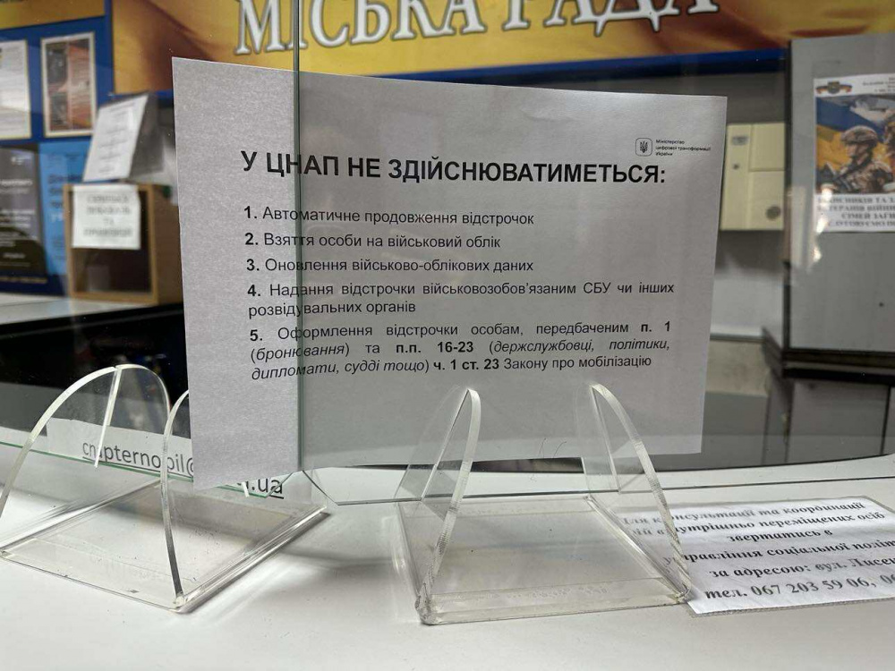 Для громадян, чий тип відстрочки ще не цифровізовано, або для тих, хто не користується смартфоном, з 1 листопада 2025 року можна подати заяву про відстрочку в Центр надання адміністративних послуг міста Тернопіль (вул. Князя Василя Костянтина Острозького, 6).