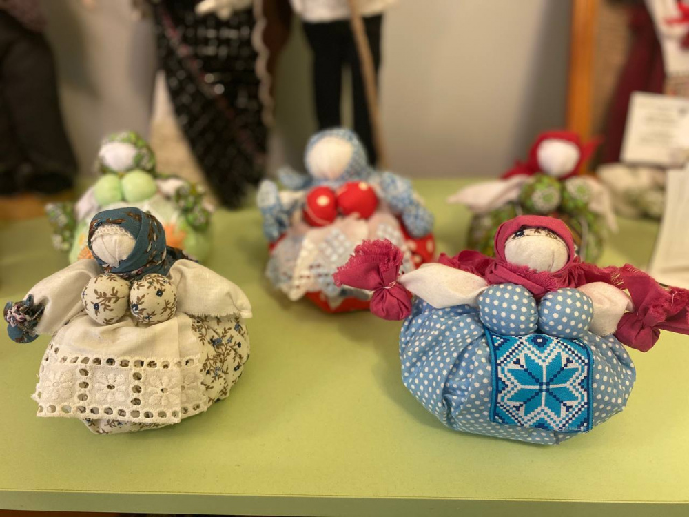 На експозиції представлено ляльки-мотанки громадської організації «Школа борщівської народної сорочки». Всього - понад 50 ляльок. Серед експонатів - справжні витвори народного мистецтва: ігрова іграшка «Долонька щастя», ляльки у народному стилі - східно-подільська, гуцулка, колядники, дід і баба, а також інші вироби, створені у техніці славетної борщівської вишивки.