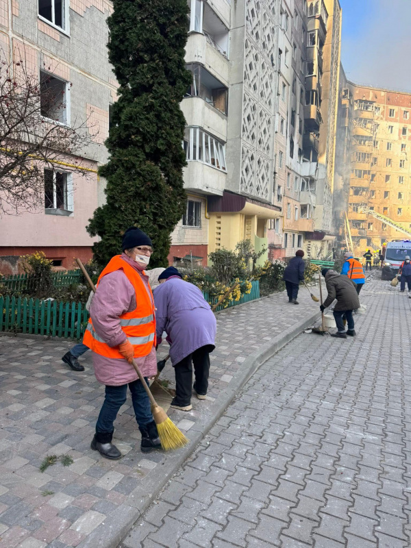 У Тернополі триває робота з допомоги мешканцям багатоквартирних будинків, які постраждали внаслідок нічної атаки. На даний момент у пошкоджених багатоповерхівках п