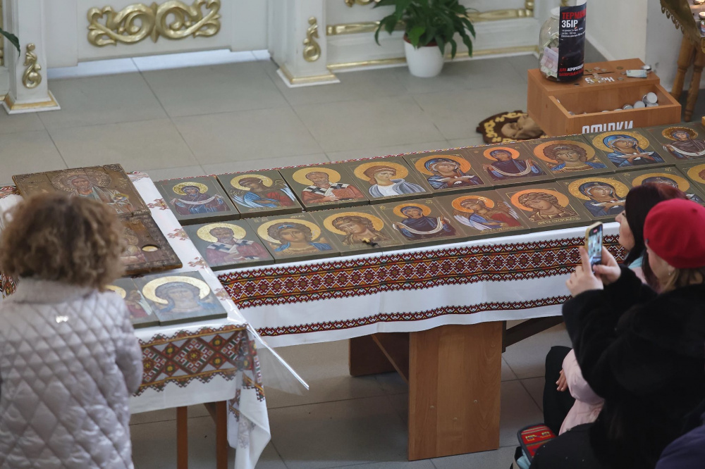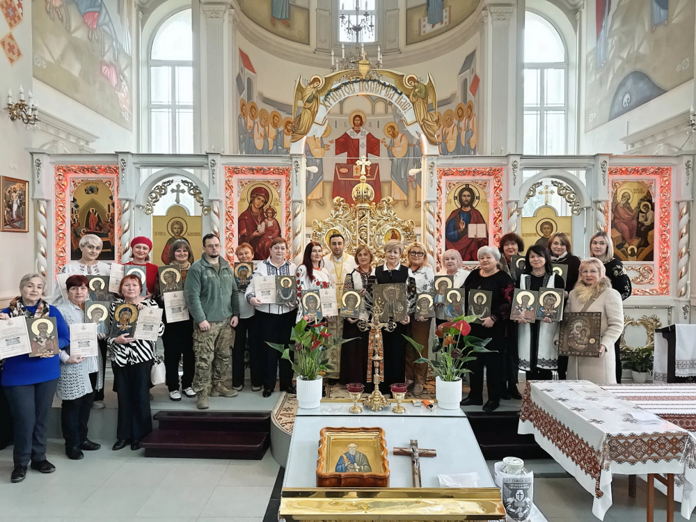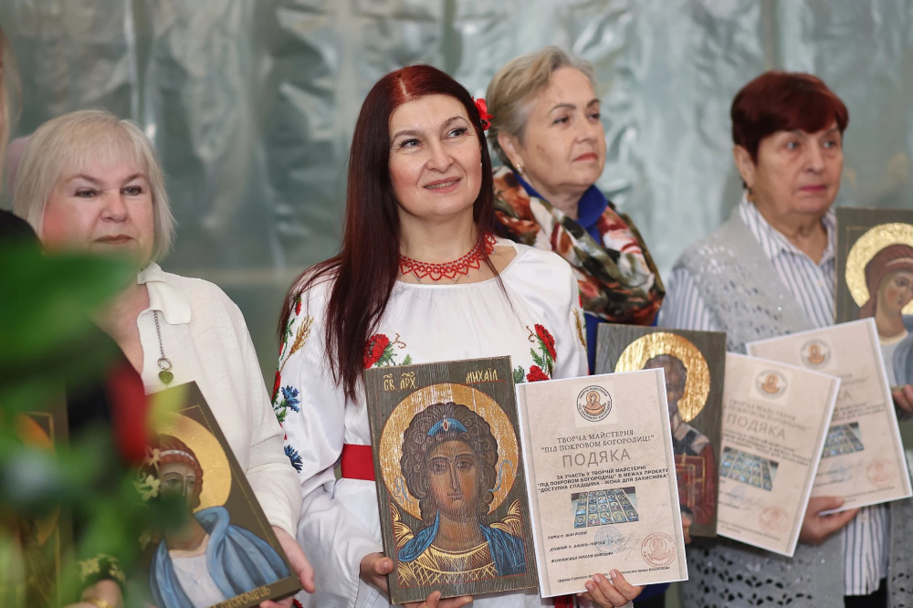 У Тернополі освятили ікони, створені внутрішньо переміщеними особами та родинами військових у межах культурно-мистецького проєкту «Доступна спадщина». Протягом тижня учасниці творчої майстерні «Під Покровом Богородиці», що діяла на базі міської бібліотеки №4 для дорослих, працювали над написанням 20 ікон, які передадуть українським захисникам.