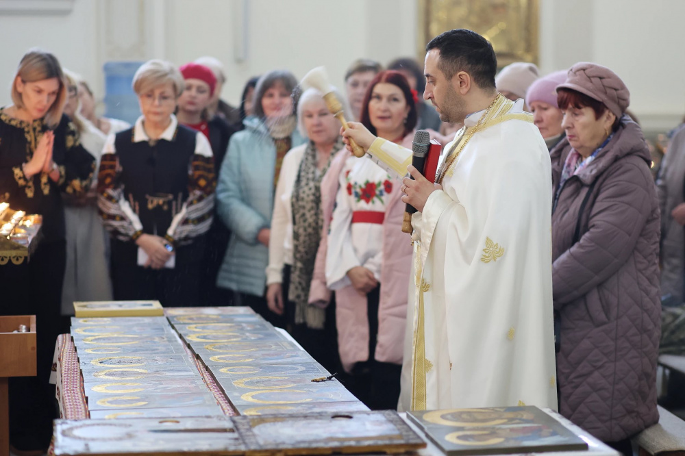Освячення відбулося у Церкві святого апостола і євангеліста Івана Богослова. Настоятель храму отець Василь Макоїд привітав учасників і благословив створені ікони. На службі був присутній військовий - син однієї з учасниць майстерні. Саме він повезе першу з написаних ікон у 67-му окрему механізовану бригаду.