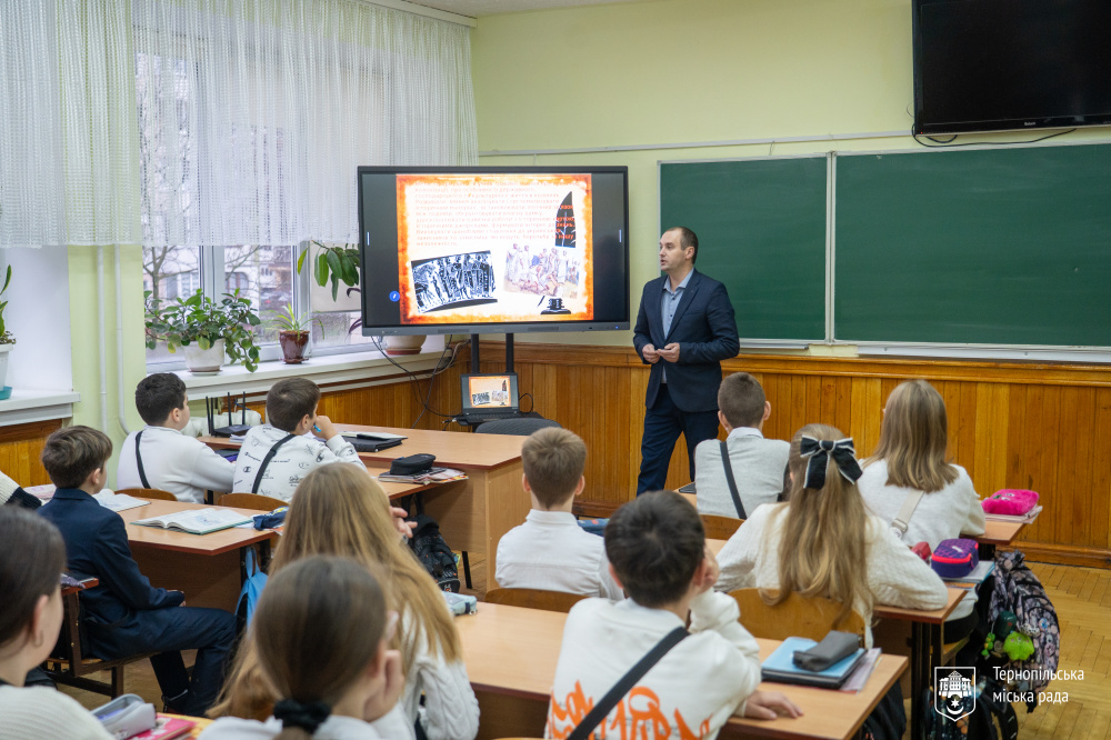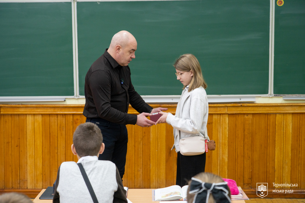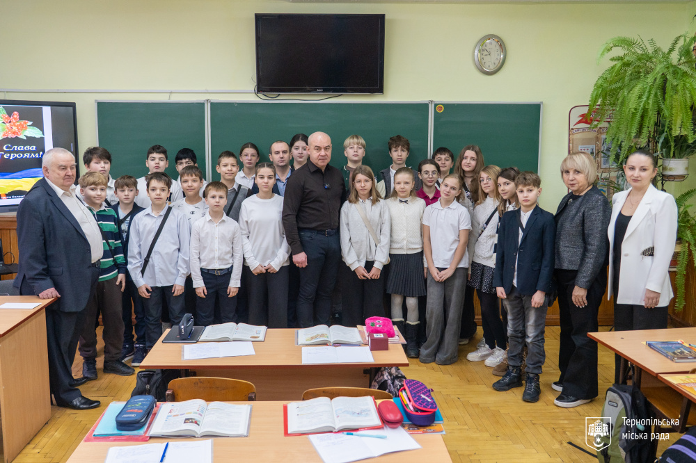 На уроці був присутній міський голова Тернополя Сергій Надал. Він вручив дівчині пам’ятний годинник, як знак подяки родині загиблого воїна та нагадування про важливість підтримки тих, хто втратив рідних на війні.