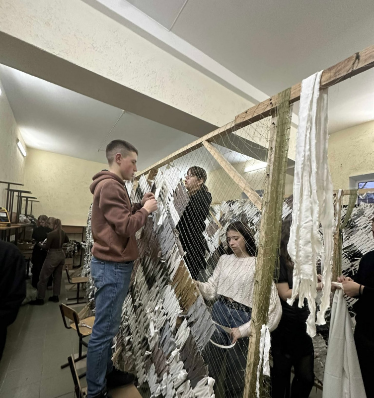 У Тернополі студенти одно з вищих навчальних закладів плетуть маскувальні сітки для захисників України. Завдяки цим сіткам воїни отримують необхідний засіб маскування у небезпечних умовах.