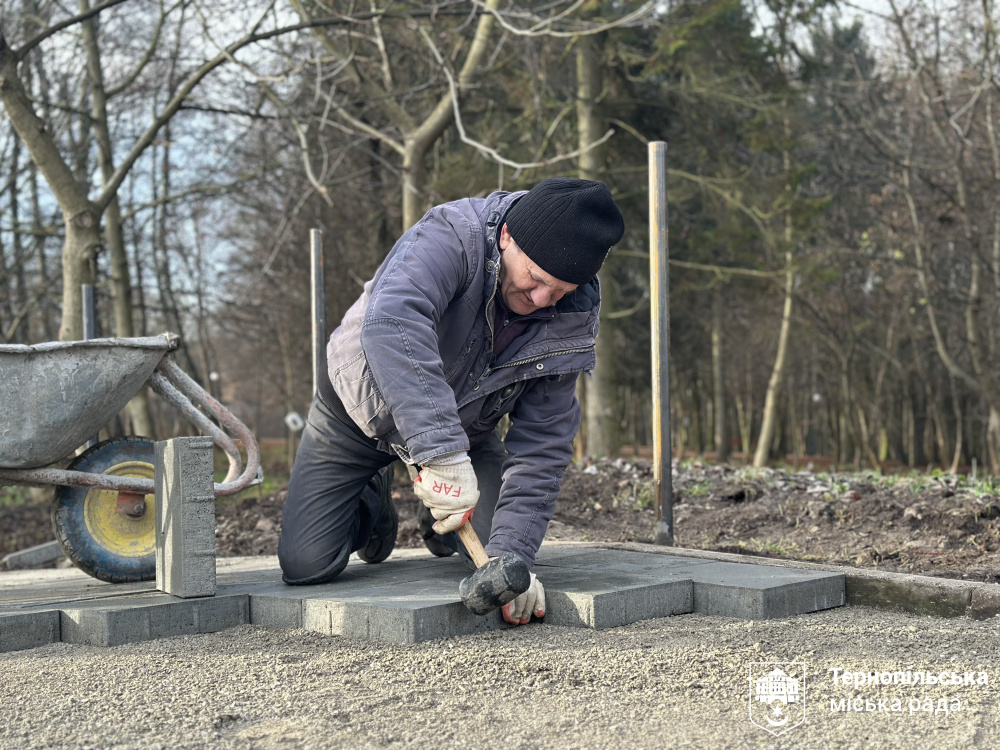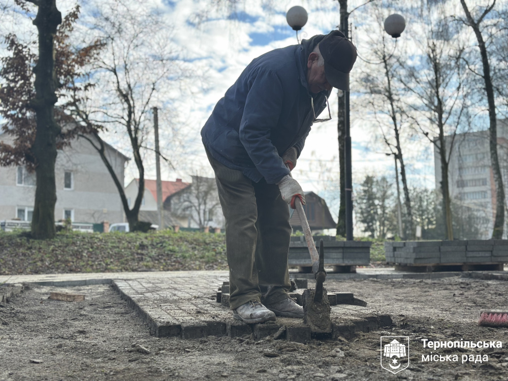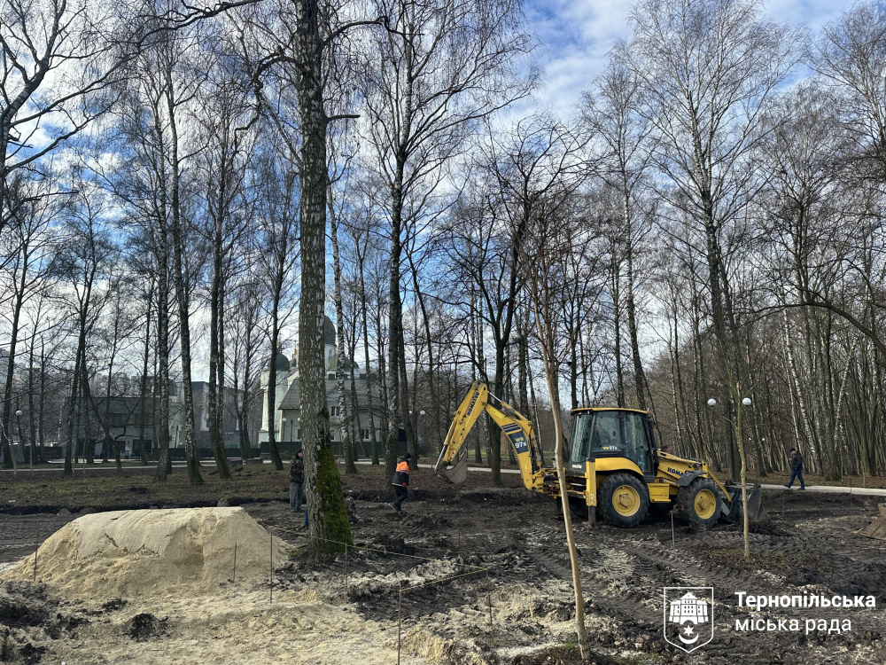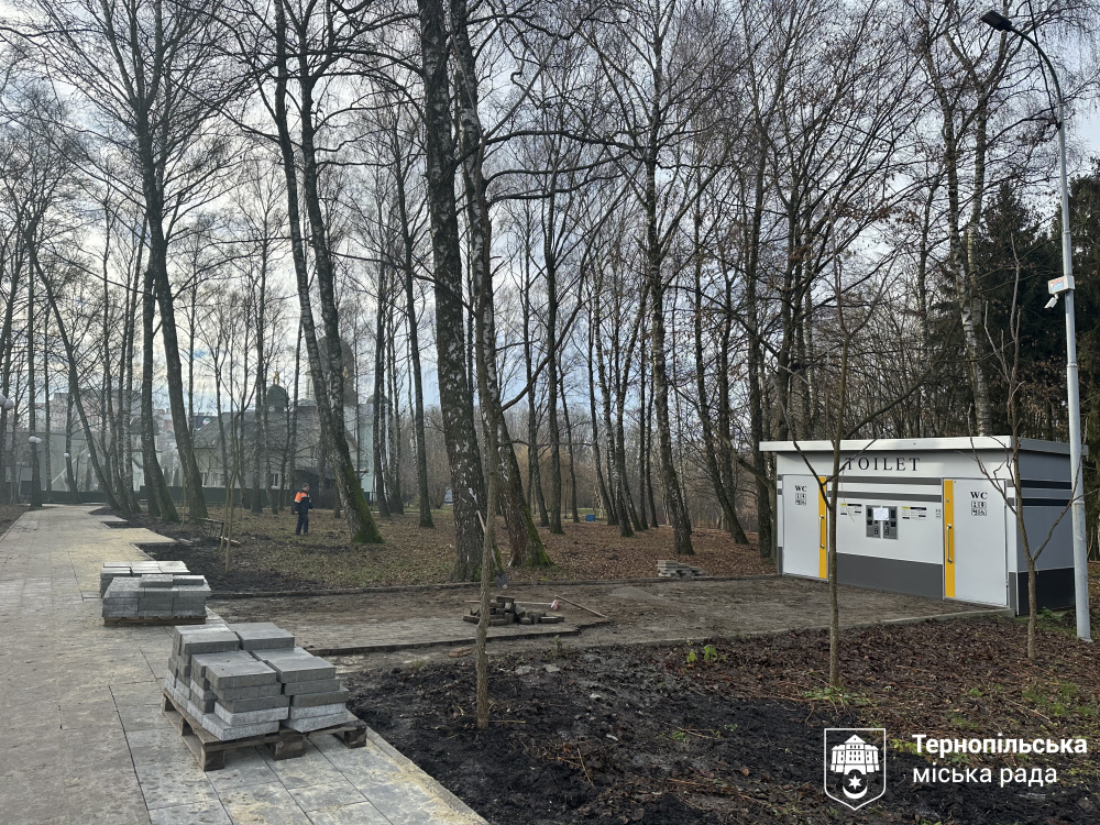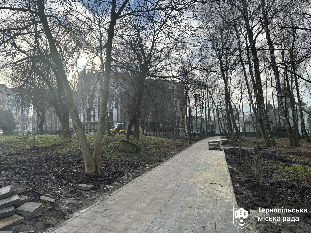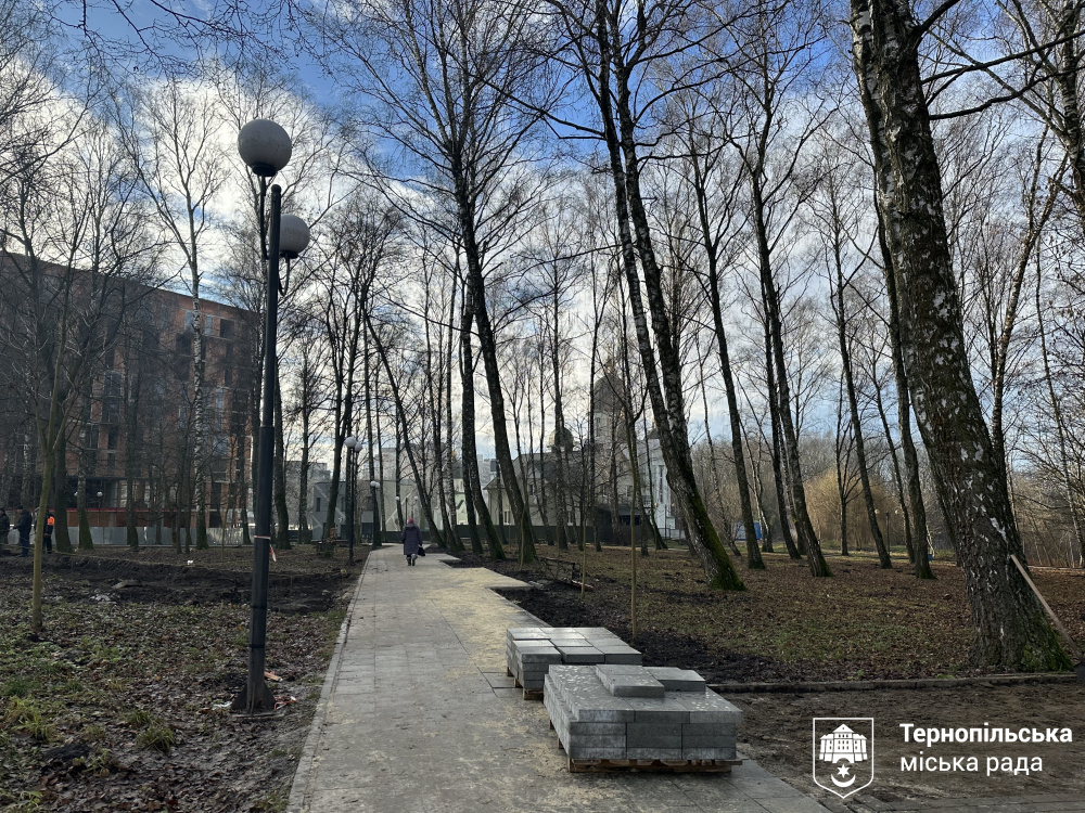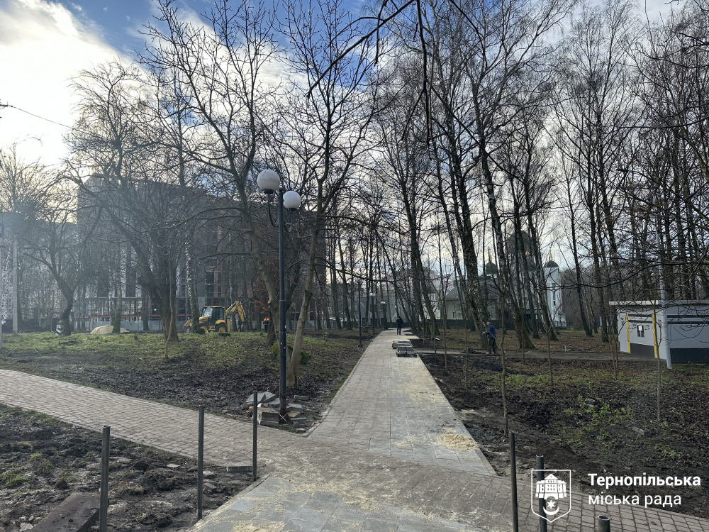Паралельно в парку оновлюють інфраструктуру: на пішохідній доріжці вже практично вклали нову бруківку, яка відповідає стандартам безбар’єрності. Окрім того, тут буде встановлено інклюзивні лавки, урни для сміття, проведено оновлення газонів. Роботи здійснюють в рамках «Портфоліо міських перетворень «Зелене та комфортне місто Тернопіль» Ініціативи «Мери за економічне зростання», що впроваджується Програмою розвитку ООН (ПРООН) в Україні та фінансується Європейським Союзом.