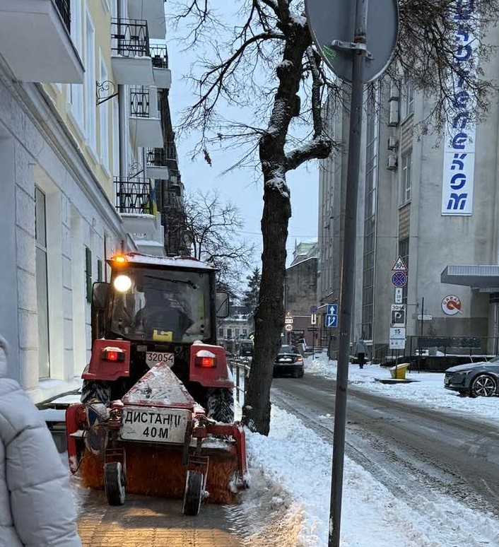 Станом на 10:00 год ранку на дорогах і тротуарах Тернополя та населених пунктах громади працює понад 20 одиниць снігоприбиральної техніки.
