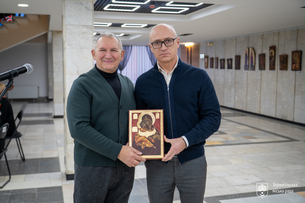 З відкриттям персональної виставки митця привітав заступник міського голови Тернополя Володимир Дідич. Під час заходу Володимир Шерстій передав громаді міста ікону Матері Божої Вишгородської.