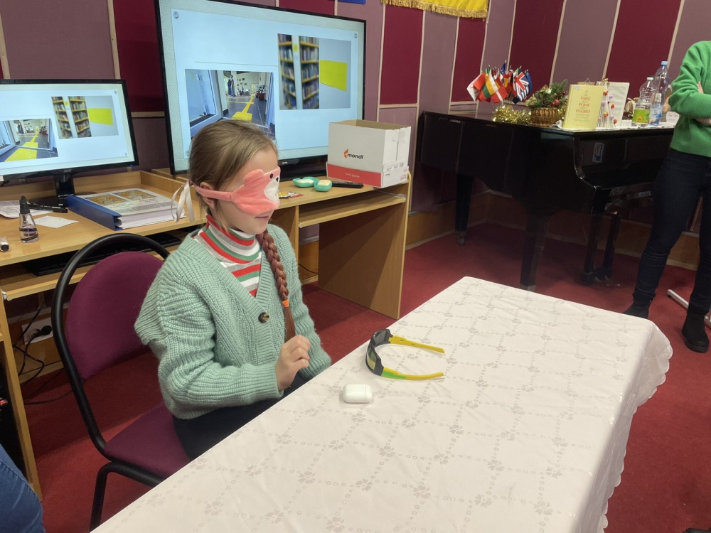 Учасники мали змогу спробувати читати на дотик, розглянути книги, надруковані шрифтом Брайля, та відчути, наскільки важливими є пальці для людей, які не бачать очима. Також діти взяли участь в інтерактивній грі «Зрозуміти предмет та знайти його призначення наосліп», під час якої вони наосліп відгадували різні предмети.